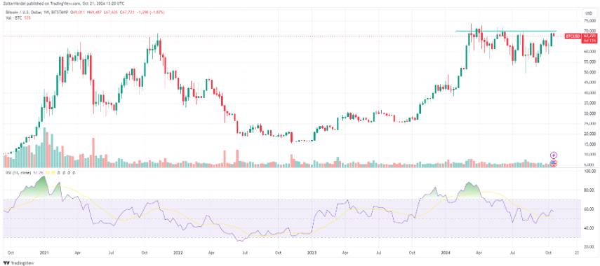 儘管歐洲投資者大量資金湧入,美國比特幣 ETF 創下紀錄,比特幣自 7 月以來仍無法重回 70,000 美元的關鍵心理關口。