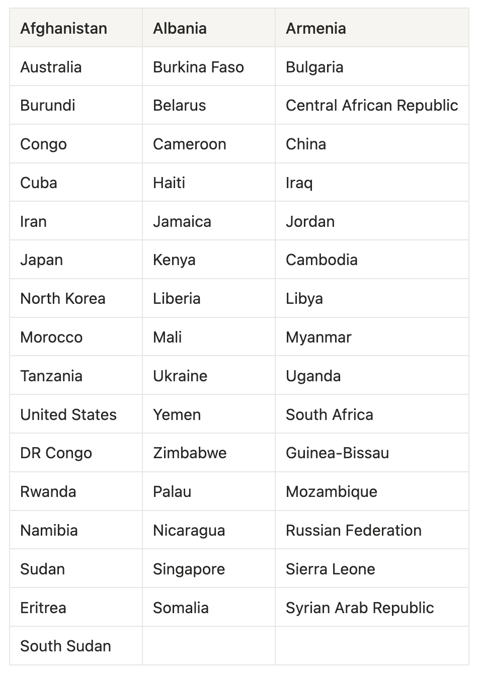 WebitPay服务不支持的國家/地區列表